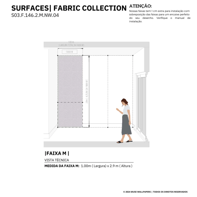 Todas nossas faixas são impressas em papel de parede vinílico (base nonwoven com acabamento superior vinílico), garantindo uma fácil aplicação, longa durabilidade e boa resistência à luz. Além disso, em caso de remoção o processo é simples e rápido, podendo ser facilmente destacado da parede e, em alguns casos inclusive, ser reaplicado em outra superfície.